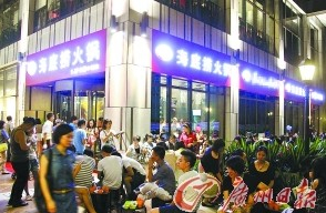 前日,海底撈廣州店試業。在上半年羊城餐飲行業整體下滑20%的背景之下,人均消費達100元的海底撈仍表示不打折。昨日晚餐時間,記者前往海底撈發現,以服務著稱的海底撈門外諸多食客不僅沒有享受到傳說中的修甲、玩飛行棋等服務,還只能站著等位,有消費者質疑其服務打折。