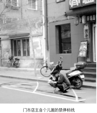 附近居民周先生說,這些停車位已畫了好長時間了。有的門市為了自己的利益,就用凳子、電動車占位,而自己畫禁停標志的這還是第一次碰到。記者了解到,《沈陽市機動車停車場管理辦法》有明確規定,對私自占用或更改、刪減停車位最高將對改造方罰款1000元。