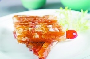 石耳和干筍是西南民族特色食材,非常適宜北方秋季食用。北京全聚德前門店的冷菜“石耳拌干筍”,創造性地將這兩種食材巧妙組合,搭配精心調配的醬汁,既酸辣適口,又營養豐富。此外,像北京全聚德前門店的“百合釀糕”,北京全聚德雙井店的“棗泥山藥糕”等創新面點,更是紛紛選擇了百合、棗泥、山藥等秋天當季盛產的食材,不僅口感香甜軟糯,而且健康養生。