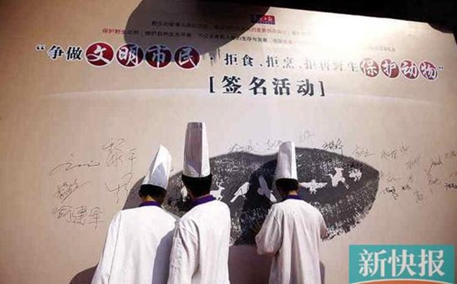 由東莞市文明辦和市林業(yè)局共同主辦的“爭做文明市民,拒食野生保護動物”公益倡議活動上周五啟動,當天就吸引了百余家餐飲單位的廚師聯(lián)合簽名拒烹野生保護動物。