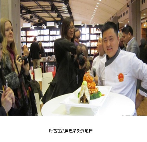 作為組委會應(yīng)邀唯一代表中國參加此次盛會的中國寧夏廚師吳志紅,向世界各地的來賓表演了中國清真美食,他克服了使用西餐用具及電磁爐不習(xí)慣的困難,在法國藍帶廚藝學(xué)院的學(xué)員配合下圓滿完成了這次表演,制作的翡翠魚花受到觀眾的熱烈歡迎,他以高超的技藝征服了世界各地的美食愛好者,受到了評委會主席愛德華?君度先生的高度評價。據(jù)悉,代表中國的美食圖書《舌尖上的中國》也獲得了這次大獎賽的獎項。