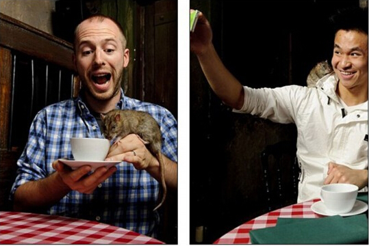 老鼠咖啡屋的靈感源于當前日本流行的“貓咖啡屋”,那里的顧客午休時可在貓的陪伴下吃午餐。而倫敦的老鼠咖啡屋中,則是老鼠相陪。如果你胃口夠好,也可在老鼠咖啡屋中就餐。