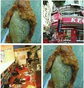 9月25日上午,微博、微信、甚至是QQ空間,出現了內容相似的一則有關于蘭州七里河肯德基店的消息。消息稱:在蘭州七里河肯德基店的炸雞腿里吃出蟲子,并且,七里河肯德基店被市民給砸了。除了文字以外,該內容還被附上了圖片,這讓不少市民信以為真。但事實究竟是怎樣的?記者前往蘭州七里河肯德基店了解情況。9月25日早,記者在朋友QQ空間內看到一則消息,附有4張圖片,上面的文字內容稱蘭州肯德基吃出了肉中肉,里面生了很多寄生蟲,七里河店被市民給砸了,你還敢吃什么?朋友們千萬不要再去吃那個惡心的東西了。隨后,記者聯系到該朋友,他稱發上這樣的內容,沒有對事件本身進行過核實,圖片的來源是他的朋友,之所以會在QQ空間內發這樣的圖片,是因為此內容涉及到了食品安全,他也是想提醒周邊的朋友們要重視食品安全的問題。