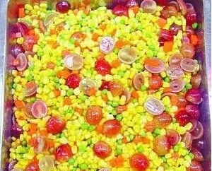 “其實我就想著我們要盡量做些營養均衡搭配的菜,這樣學生們攝入的營養才全面。就比如說玉米炒葡萄這道菜,我們是在9月份供應的,那個時候天氣又熱,很多學生都吃不下飯,我就想著給學生們該吃得清淡些,多吃些蔬菜水果,這樣一道菜就出來了啊。”
