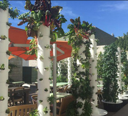 現在有很多人會自己種植食材,似乎有些餐館也開始趕這個潮流。例如好萊塢的餐廳“Tender Greens”,里面有各種垂直花圃,他們種植的所有東西都出現在菜單上。