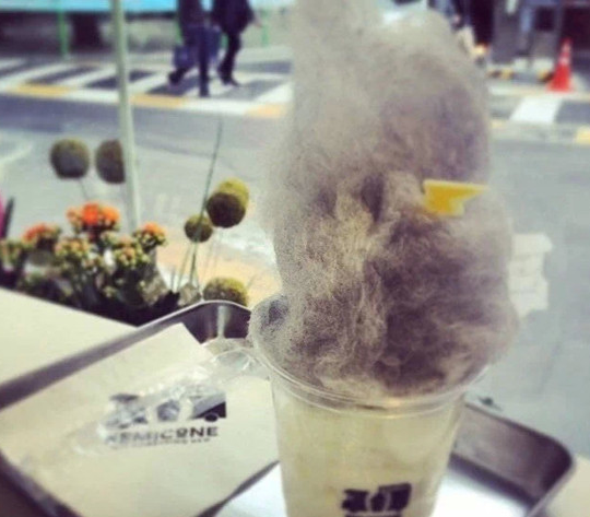 “為了能嘗到招牌烏云冰淇淋,遠在韓國Sinsa的總店、東大門DusanTower店,被不少來韓旅游的吃貨們擠爆了!痹撠撠熑私榻B,薄荷味的黑色棉花糖,被“拗”成烏云造型,還插上一塊“閃電”般的進口白巧克力,再配上冰淇淋,已俘獲了不少屬于“外貌協會”的吃貨們。
