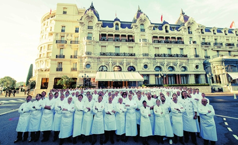 2012年11月的某一天,摩納哥路易十五餐廳里聚集了240位來(lái)自世界各地的名廚,這些廚師總共擁有300顆米其林星星,全部是擁有著“世界御廚”美譽(yù)的法國(guó)頂級(jí)大廚Alain Ducasse的邀請(qǐng),來(lái)參加Alain Ducasse集團(tuán)25周年慶典。大董是其中唯一一位華人廚師,合影時(shí)主辦方特意將他安排在最前排。