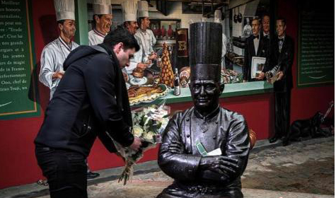民眾給博古斯的銅像獻花,悼念這位法國廚神。
