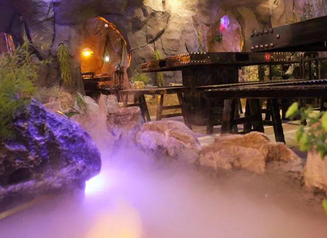 (山水溶洞火鍋內部裝修如溶洞景區)